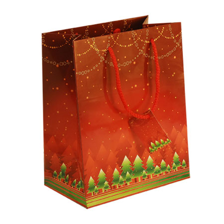 Medium Red Xmas Gloss Laminated Christmas Gift Bags - Gloss Lamination Portrait - 20 x 25 x 12 cm (8 x 10 x 5 inch )