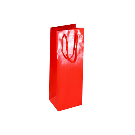 This style of bag is made from high quality 190 gsm Art Paper so that the wine bottle inside will be kept safe and secure. These bags also come with reinforced card for added security at the top and bottom of the bag, which is where a little extra support goes a long way. As standard, this bag comes with a matching red rope handle, which combines style with functionality and makes it easy for your customers to carry.